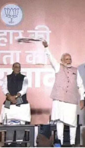 बिहार में बंपर जीत के बाद पीएम मोदी पहुंचे बीजेपी ऑफिस और बिहारी स्टाइल में लहराया गमछा