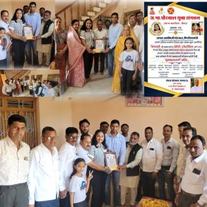 अखिल भारतीय पोरवाल युवा संगठन द्वारा राष्ट्रीय स्तर पर आयोजित रांगोली प्रतियोगिता की द्वितीय स्थान प्राप्त विजेता आंचल आशीष जी धनोतिया पिपलियामंडी को युवा संगठन के संरक्षक श्री गोविंद जी डबकरा , राष्ट्रीय अध्यक्ष श्री नरेंद्र जी उदिया , राष्ट्रीय उपाध्यक्ष दिनेश जी फरक्या, भाजपा के पूर्व जिला अध्यक्ष मानसिंह जी माछोपुरिया, पूर्व प्रदेश प्रवक्ता दिनेश जी गुप्ता , राष्ट्रीय कार्यकारिणी सदस्य दिनेश जी डबकरा विशेष आमंत्रित सदस्य राजेंद्र जी गुप्ता मोया वाले , रामप्रसाद जी फरक्या, आशीष जी फरक्या, शैलेंद्र जी मुजावदिया, राकेश जी डबकरा , राजेंद्र जी धनोतिया , राजेंद्र जी गुप्ता , लोकेश जी धनोतिया और पोरवाल युवा संगठन के सदस्यो ने उनके निवास पर जाकर सम्मान पत्र एवं विजेता राशि प्रदान कर सभी ने बधाई दी।