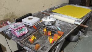 टीम द्वारा छत्रीबाग स्थित मुरैना की शाही गजक से दाना पट्टी का नमूना लिया गया।