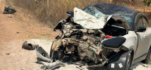 कार और मोटरसाइकिल के बीच हुई भीषण टक्कर में चार युवकों की मौके पर ही मौत ।