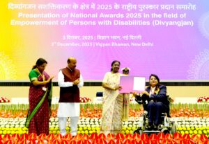 विश्व दिव्यांगजन दिवस के अवसर पर इंदौर को आज एक बड़ी उपलब्धि प्राप्त हुई है। नई दिल्ली में आयोजित गरिमा समारोह में भारत की राष्ट्रपति श्रीमती द्रौपदी मुर्मू ने इंदौर की बेटी, अंतरराष्ट्रीय पैरा–एथलीट, कैंसर सर्वाइवर और सामाजिक परिवर्तन की अग्रदूत कुमारी पूजा गर्ग को प्रतिष्ठित राष्ट्रीय पुरस्कार “Best Divyangjan (Locomotor Disability)” से सम्मानित किया। National Award to Pooja Garg