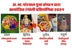 अ.भा. पोरवाल युवा संगठन द्वारा राष्ट्रीय स्तर पर रंगोली प्रतियोगिता का आयोजन हुआ संपन्न परिणाम हुआ घोषित 730प्रविष्टियां हुई प्राप्त