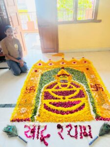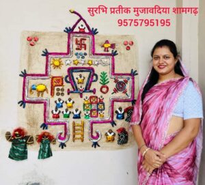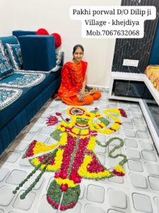 नाहरगढ़:- अखिल भारतीय पोरवाल महिला महासभा (मध्यप्रदेश इकाई) द्वारा पुरातन संस्कृति व सभ्यता क़ो सहेजने व नविन पीढ़ी क़ो सनातन धर्म से जोड़ने के उद्देश्य से सँझा प्रतियोगिता ,ठाकुरजी (लड्डू गोपाल) क़ो सजाकर उनकी पूजा करना एवं दीपावली के पर्व पर फूलो व रंगों से रंगोली बनाने की प्रतियोगिता का आयोजन किया गया था!