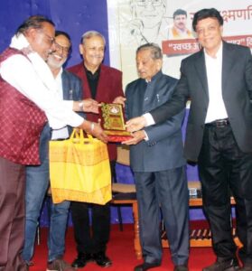 इंदौर। दैनिक दोपहर के संस्थापक विद्याधर शुक्ला और ज्योतिषाचार्य ज्वालाप्रसाद शुक्ला की स्मृति में पत्रकारिता क्षेत्र में अपनी विशेष पहचान बनाने वाले पत्रकारों और विख्यात ज्योतिषियों के सम्मान का आयोजन अभिनव कला समाज में $आयोजित किया गया। इस दौरान मुख्य अतिथि के रुप में राष्ट्रकवि सत्यनारायण सत्तन ने अपने उदबोधन से सभी को प्रभावित किया। इस दौरान पूर्व शिक्षामंत्री लक्ष्मणसिंह गौड़ की स्मृति में आयोजित स्वच्छ सुंदर इंदौर फोटोग्राफी प्रतियोगिता के पुरुस्कार भी वितरित किए गए।